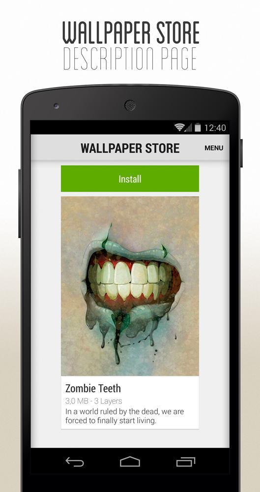 This app is not the usual 3D Live wallpaper but it contains a complete list with more than 30 Live Wallpapers that you can download. Each wallpaper comes with a nice description, the number of layers used in it and a dynamic rating of it.
