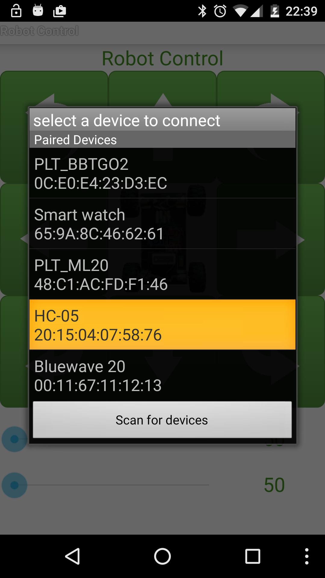 This application allows you to control any robot equipped with an Arduino board (tested with: Leonardo, Pro Micro) via bluetooth.