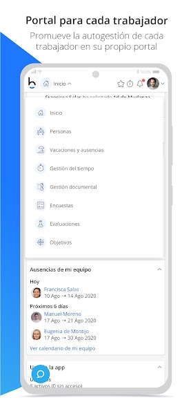 - Request your vacations and absences, or manage your team's paid time-off