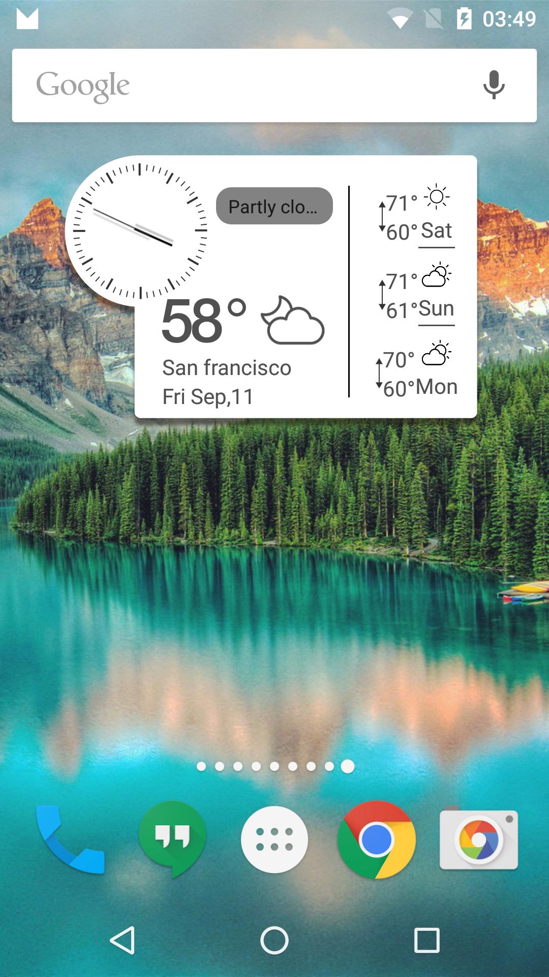 -Basic weather information (temperature, general conditions of the day, wind speed, sendible temperature) and local time are shown on the widget