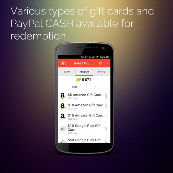 4. If you have earned enough coins you should be able to redeem Google Play, iTunes, Steam, Starbucks and Amazon cards or PayPal cash!