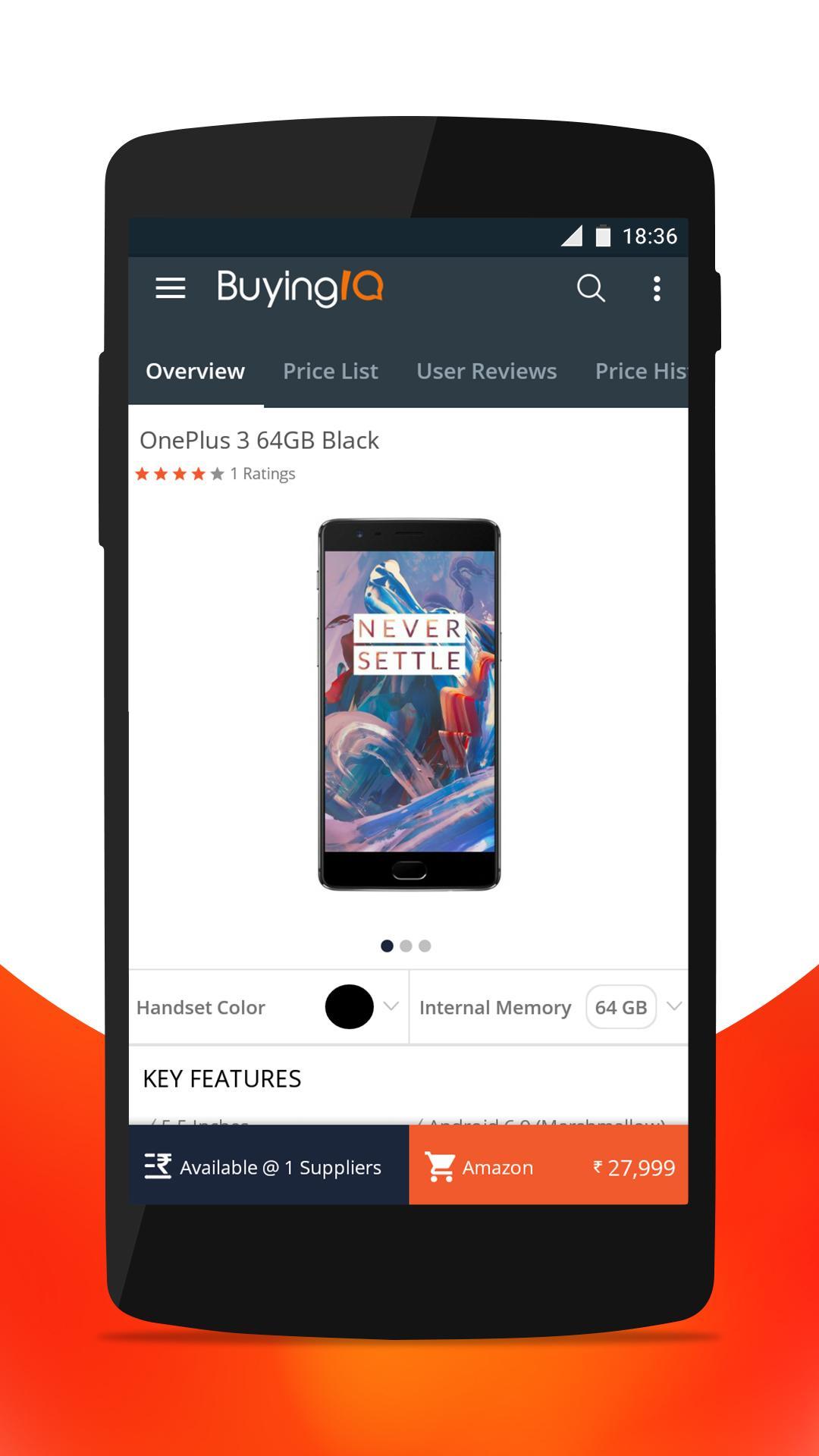 BuyingIQ Android App is your smart shopping adviser! Compare prices, read reviews, compare products, get buying recommendations and access to one of the most exhaustive range of electronic products including Mobile Phones, Tablets, Cameras (SLRs), TVs Headphones, Laptops, Mp3 Players, Printers, Trimmers and External Hard Disks.