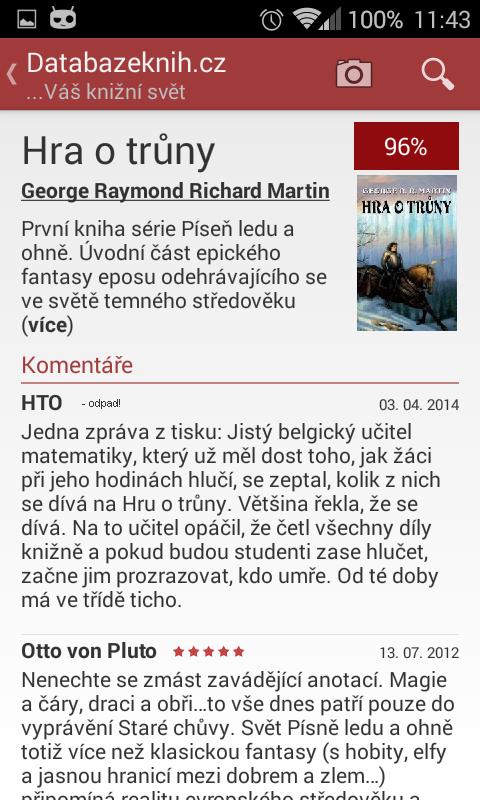 App Database of books provides profiles of authors and their biographies and reviews of books (description, rating and comments). Overview of the currently most popular books and authors site Databazeknih.cz