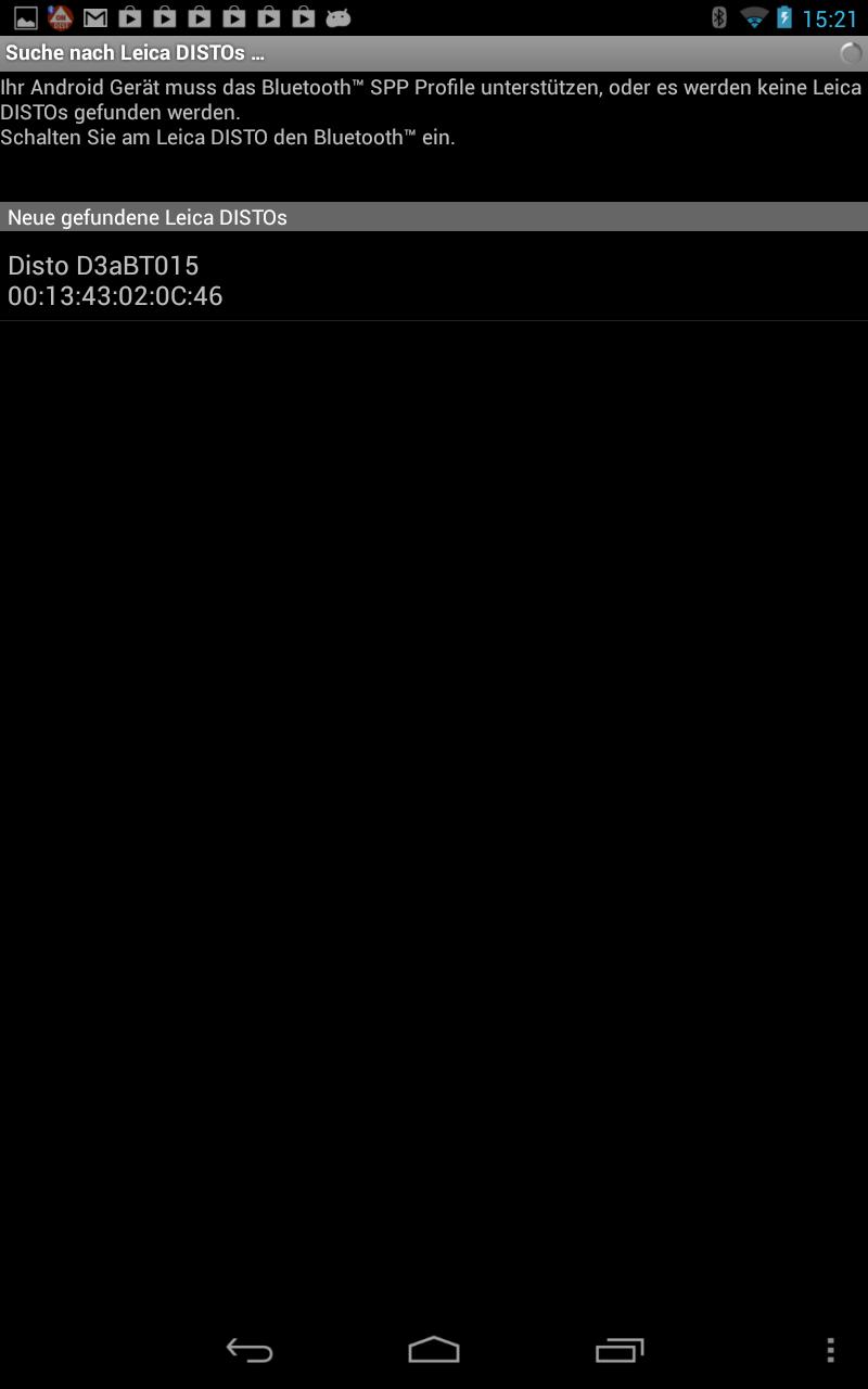 The program connects to Leica DISTO devices with Bluetooth interface (current models are Leica DISTO D3aBT, Leica DISTO D330i and Leica DISTO D8). From your Android device you can remotely trigger measurements and /or you can transfer the measurement data from the Leica DISTO into the Clipboardof your Android device to be inserted into any application.