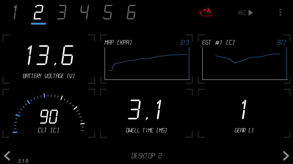 ECUMASTER DASHBOARD connects to ECUMASTER EMU engine management system via BT module, showing real time data of critical engine parameters. All data also could be stored to log file for further analysis.