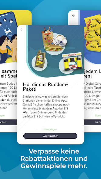 The Enilive app features regular offers and coupons that allow you to enjoy even more benefits at our Eni and Agip service stations. Whether you are shopping in the Eni Shop or Eni Café, or making your car shine at the Eni Wash, the Enilive app offers you exclusive discounts and great offers.