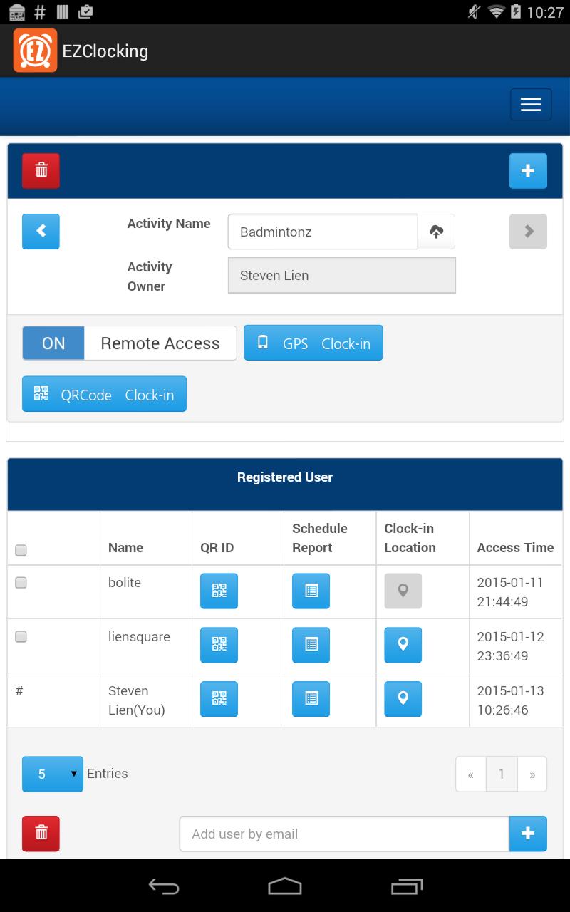 The EZClocking is a portable clocking machine that can be run on any platform. The application is targeting to the users who need to take attendance constantly such as school teachers, small business managers, and etc. Two major clocking methods are support in the app.