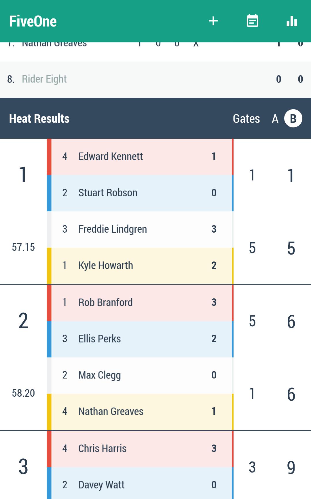 FiveOne is a Speedway Racecard for SGB Premiership, Championship and National League meetings.