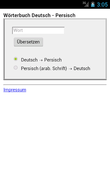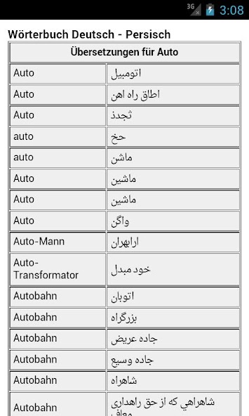 This German-Farsi Dictionary contains more than 120.000 persian translations and can be searched in both directions. It needs a network connection.