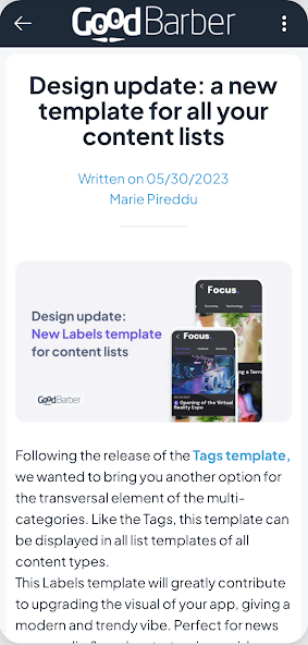 With the GoodBarber News app, follow all the latest news about creating a mobile app with our app builder. Bookmark your favorite content, such as tutorials to help you make the most of our platform. Create a profile, and become a part of our community. If you are interested in selling apps for clients, we've also lined up our best Agency Tips. Last but not least, keep in touch with us, be alerted of upcoming Events and Features’ releases.