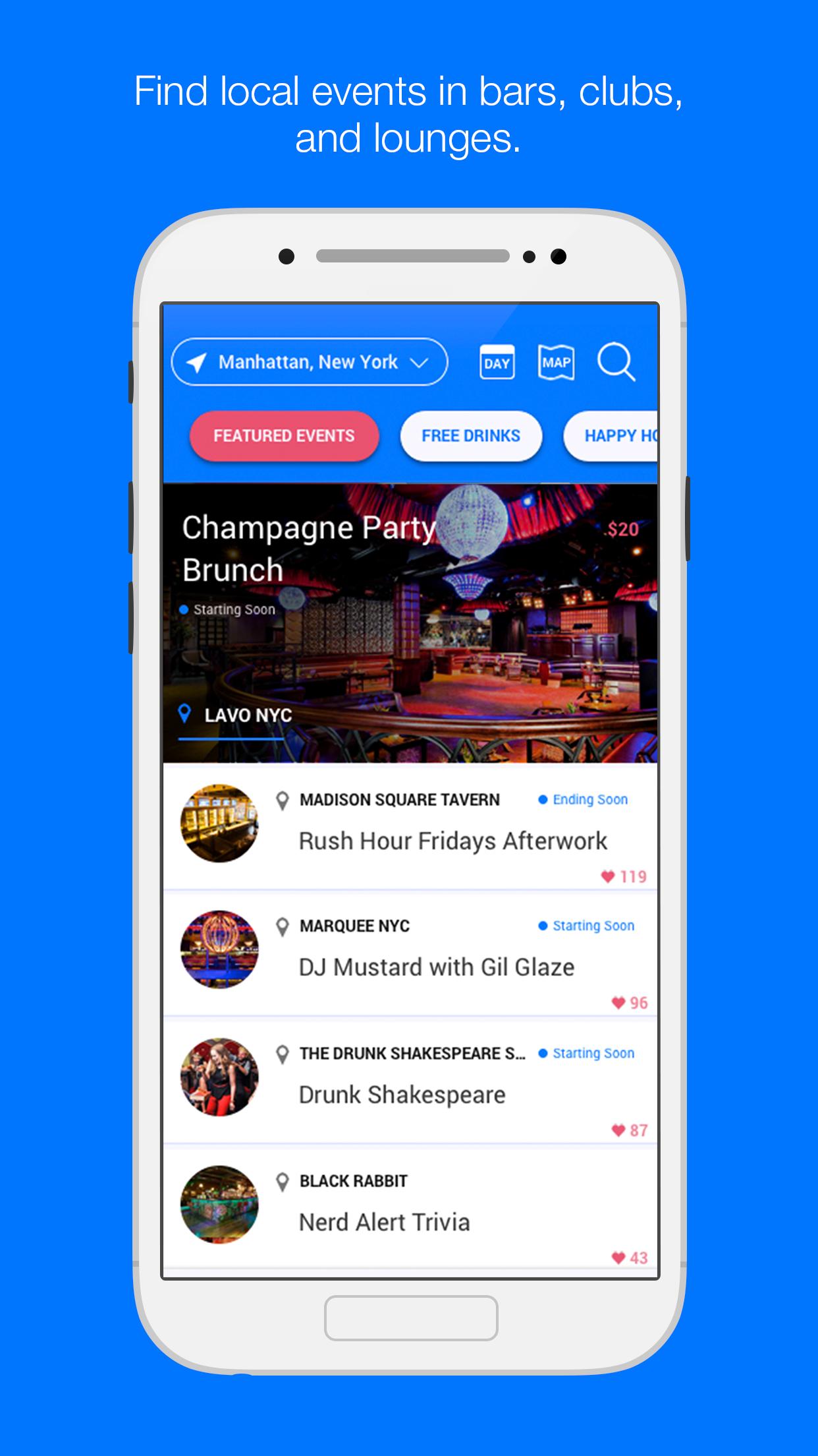 Hagtap connects you with local nightlife events such as happy hours, live music, comedy performances, and much more.