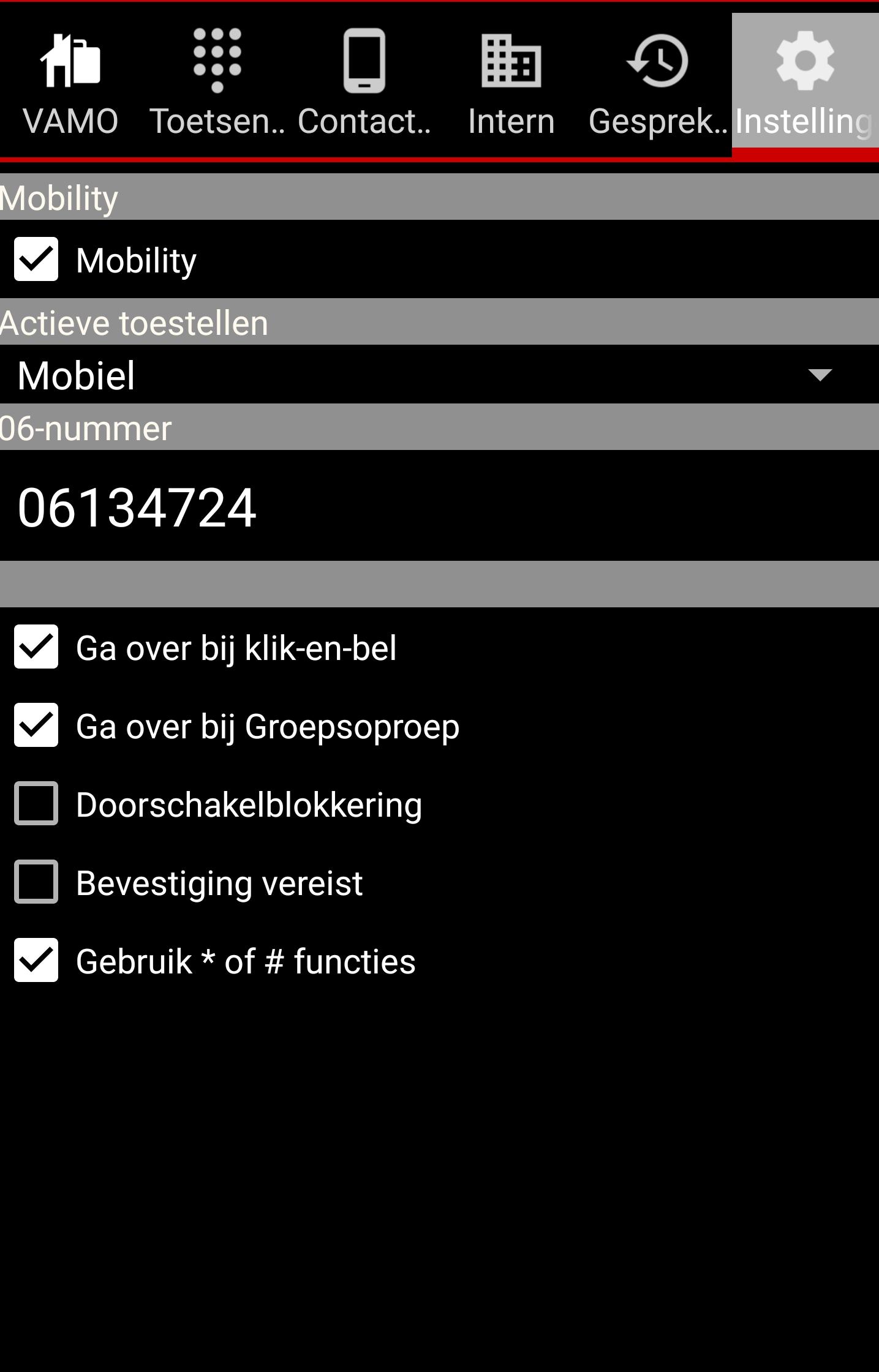 • If you use the business identity, your colleagues know that you are in conversation and the receptionist will see it on her screen. She can even break in during your conversation that you are currently having, independent of the device you use.