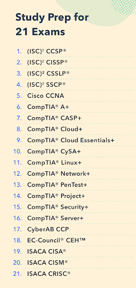 Prep for 23 IT & Cybersecurity certification exams, including: