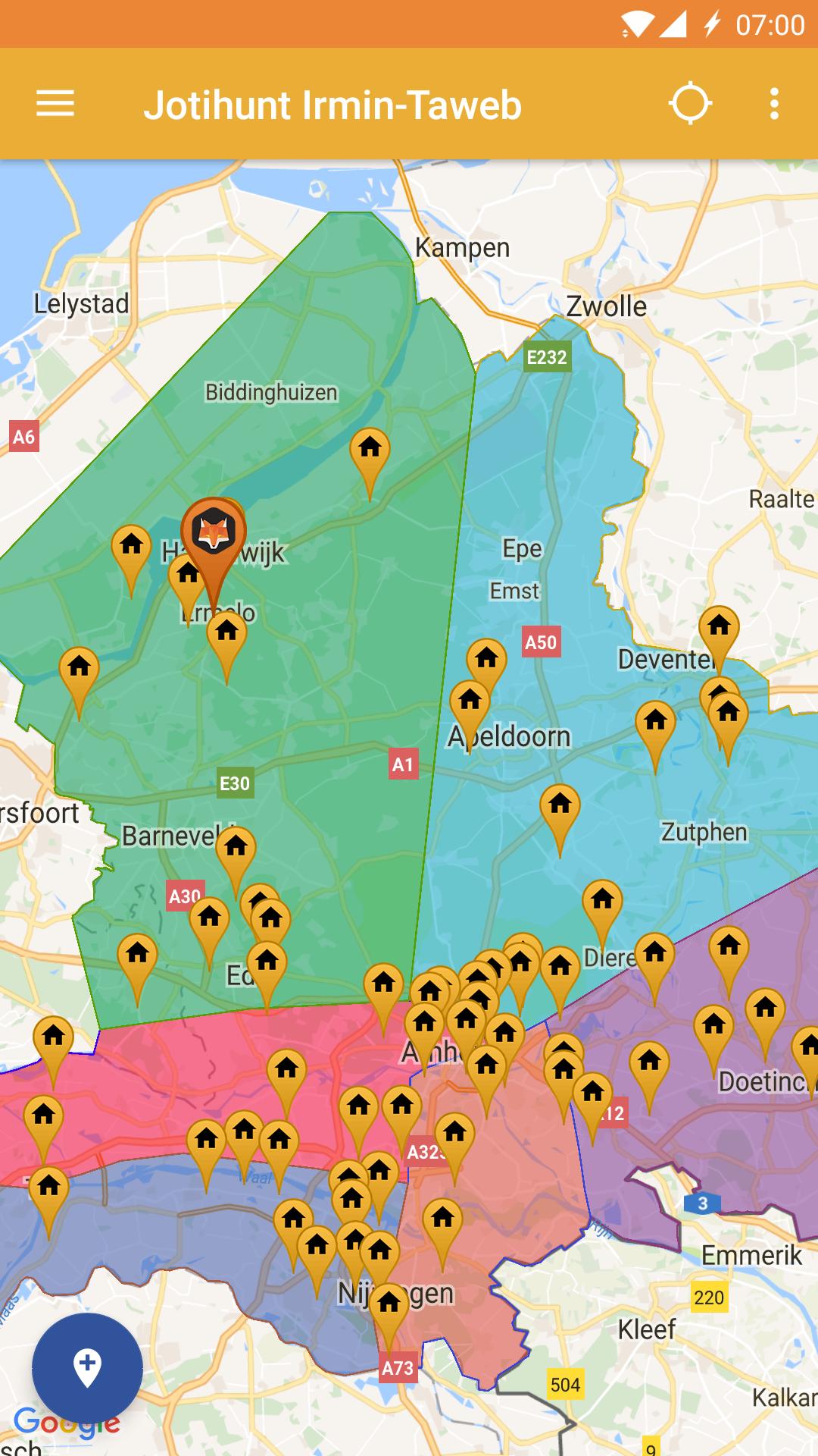 The Jotihunt is an annual interactive fox hunt organized by Steunpunt Scouting Gelderland. Scouting Irmin-Taweb has its own app every year with which Hunters can be followed, and foxes can be kept.