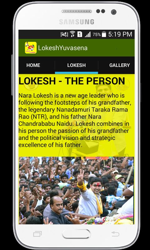 Nara Lokesh is an Indian politician and businessman. He is the son of Andhra Pradesh Chief Minister, and leader of the Telugu Desam Party, Nara Chandrababu Naidu, and grandson of Legendary N.T. Rama Rao.
