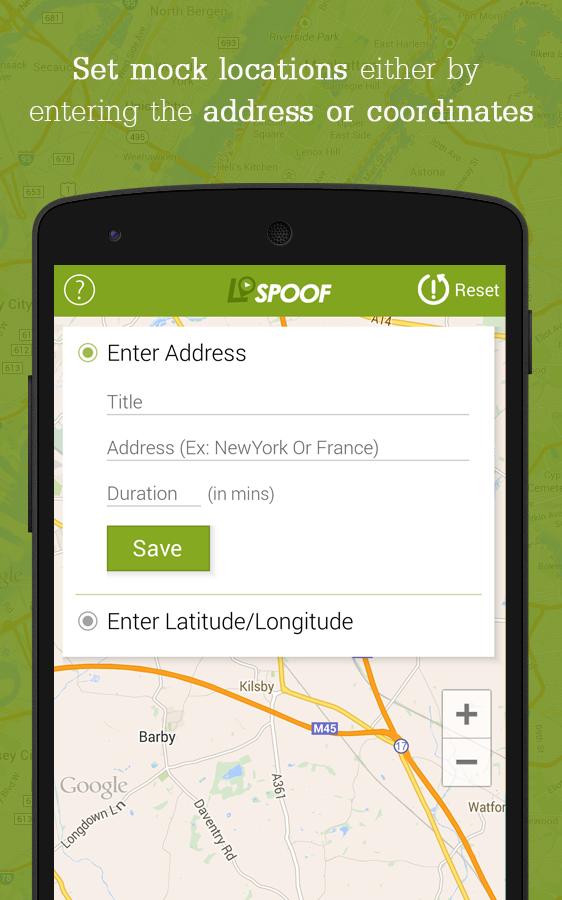 ✓Mock locations can be set using the ‘Create Locations’ menu either by entering the address or by