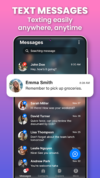 Text messaging app lets you send text messages, multimedia such as photos, videos and audio to your contacts. You can send personal text messages using the messaging app.