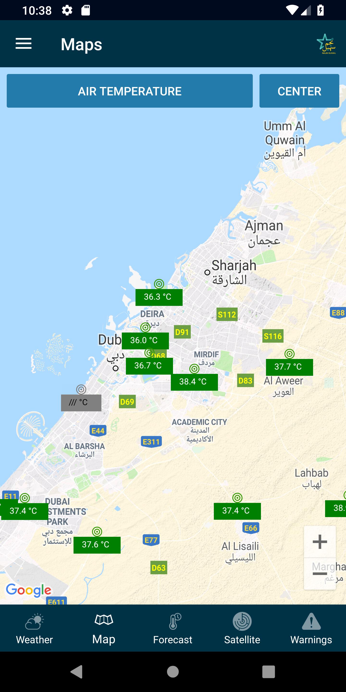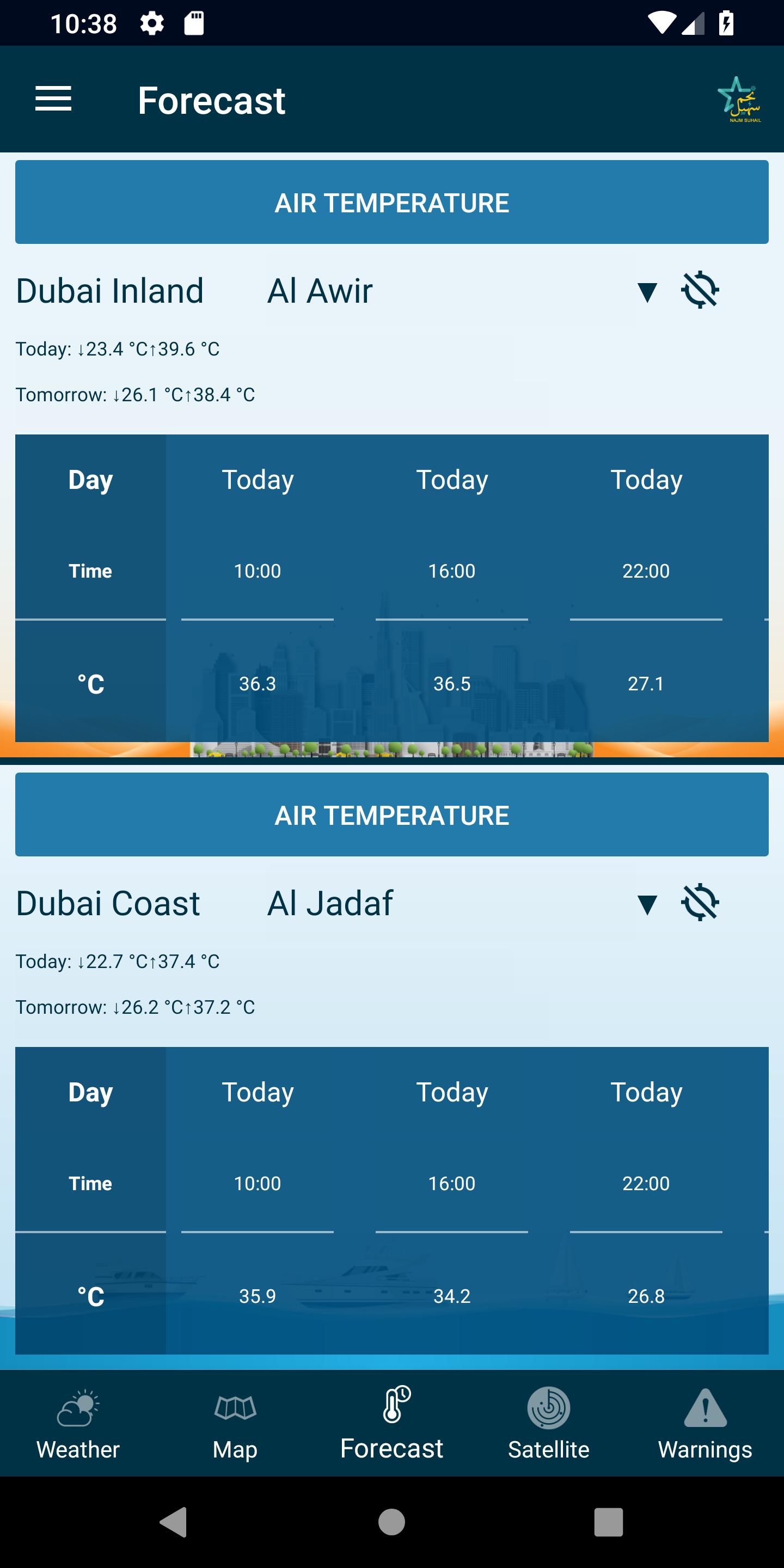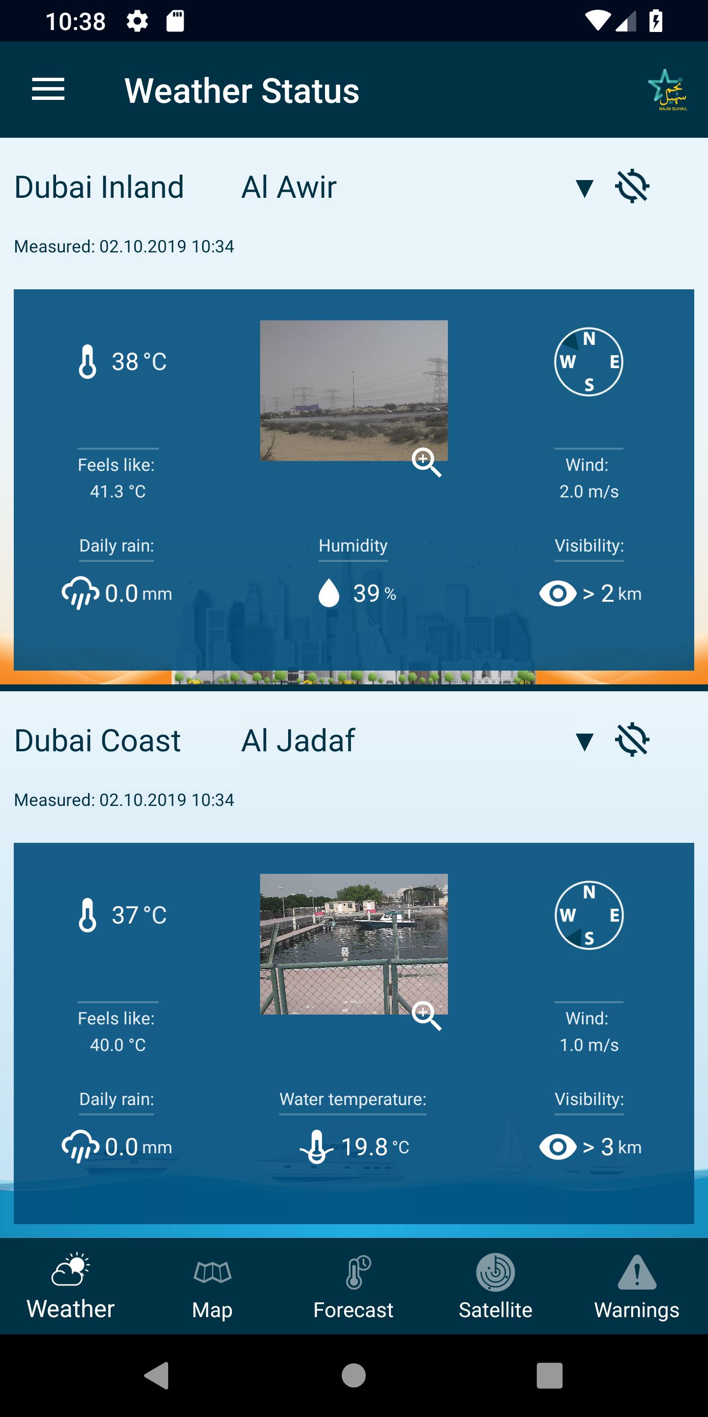 Najm Suhail provides actual weather measurements from stations located in Dubai.