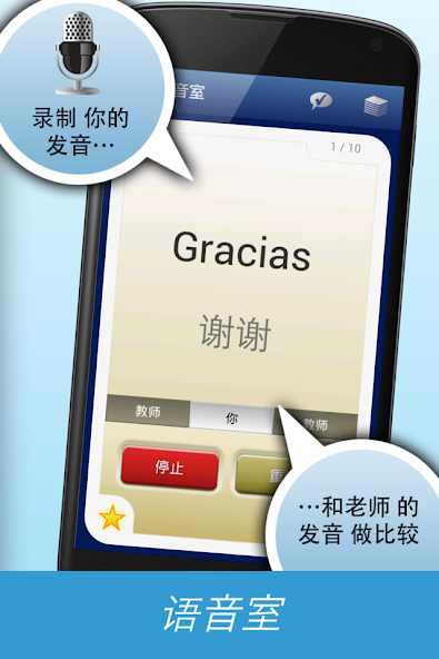 ✓ Master your accent with the Speech Studio. Simply record yourself saying a phrase and then hear your voice next to the teacher’s. Then try again. You’ll be AMAZED how quickly your foreign accent melts away.