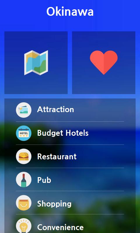 Are you going to Okinawa? Take this Free Okinawa city guide in your pocket. “Okinawa city guide” helps you find all of things about Okinawa. With any kind of restaurants, night-life, attractions, shopping area and moreover convenience facilities saved in the “Okinawa city guide”, makes your travel perfect!