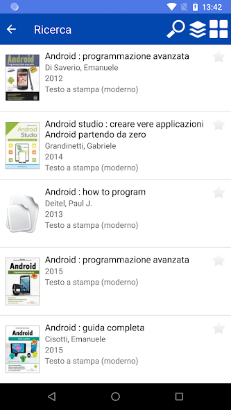 With the Polimi Library APP you can search using the keyboard typing or by voice, dictating the title or keywords of the desired document. Searches can also be done by reading the bar code ISBNs by activating the scanner.