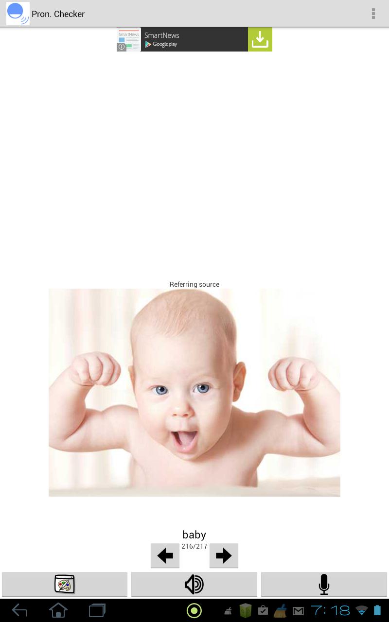 This is an application for English pronunciation practice. This app can recognize your voice and determines if it is proper pronunciation. And the picture corresponding to the word is also displayed. Therefore, at the same time, you will try to memorize not only the pronunciation but also the image.