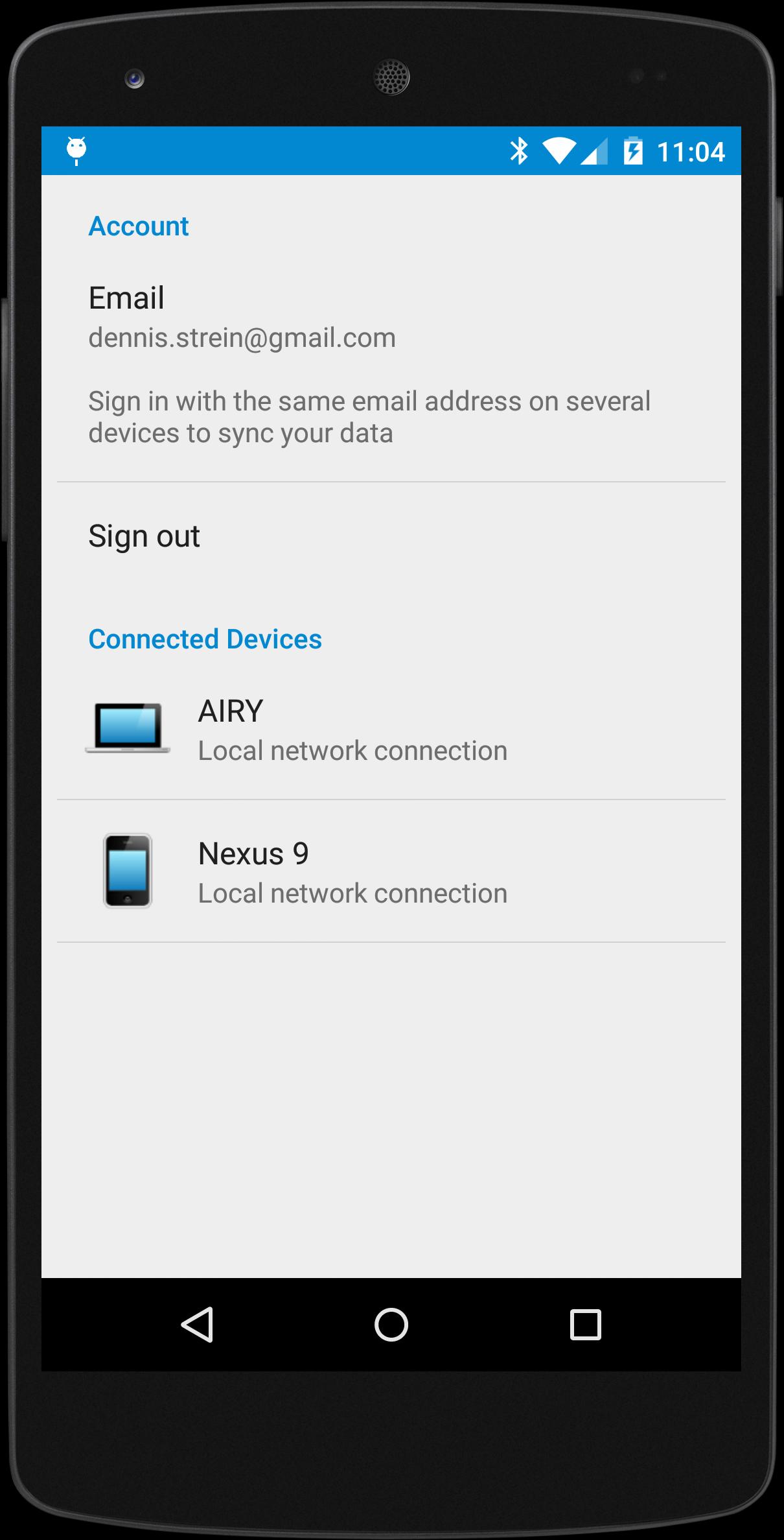 Scatter syncs data directly between your devices and your PC using the local WiFi connection if possible without taking a detour through the cloud. The data is stored on your devices, so you have fast access even when on the go with a poor Internet connection.
