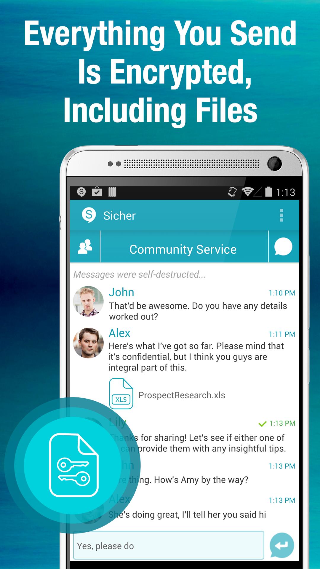 Encrypted texts, pics, voice and file sharing for friends and groups.