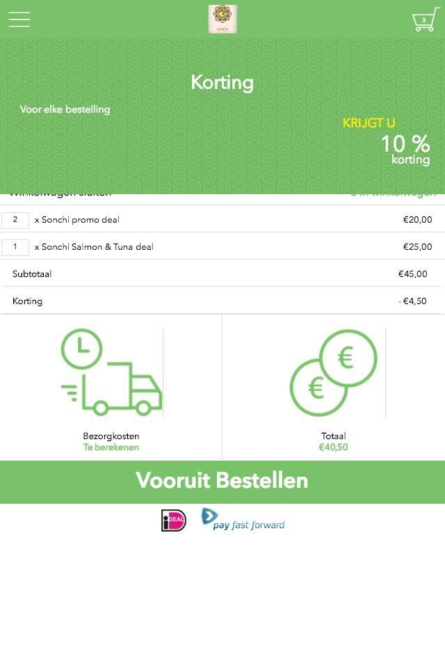 The Sonchi Sushi Wok app is made to place an order more easily and faster by means of a simple menu. In the menu you can opt for popular dishes, but you can also prepare a menu yourself.