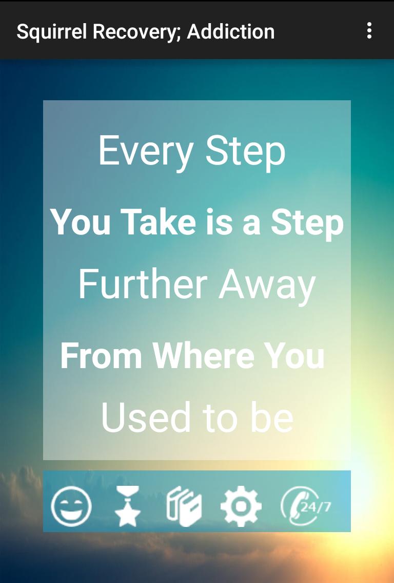 This is an app to help recovering addicts with their sobriety. Squirrel Recovery; Addiction App is personalized to each person. It sets up a recovery circle with sober support people that you choose. You can set personal check in times for the app to check in when using was most likely to occur. This information with be sent in a text message to people you have chosen to be your recovery circle. A Panic button by passes all check ins so that help can be given immediately. Squirrel Recovery; Addiction App also keeps track of sober days, gives "coins" when milestones are achieved and offers motivational quotes for encouragement.