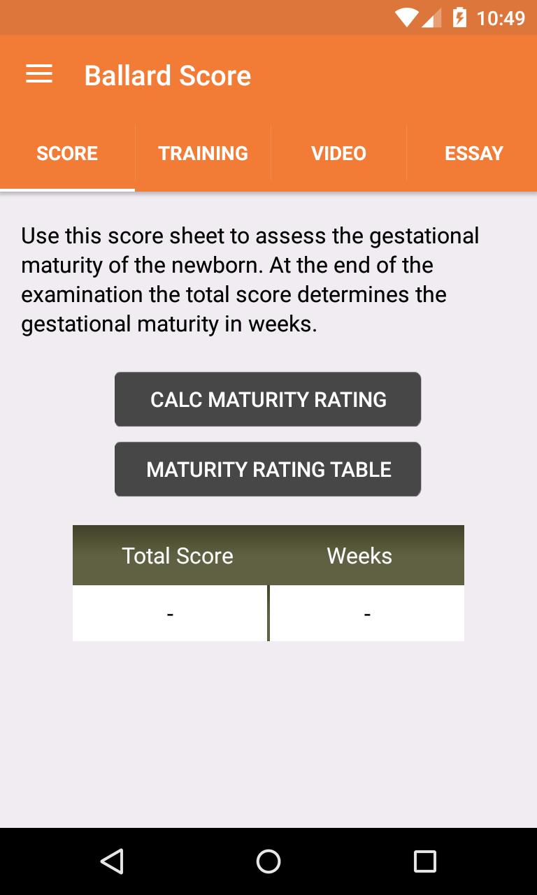 - Interactive Score Sheet that automatically calculates the weeks gestation based on the cells selected on the touch screen.