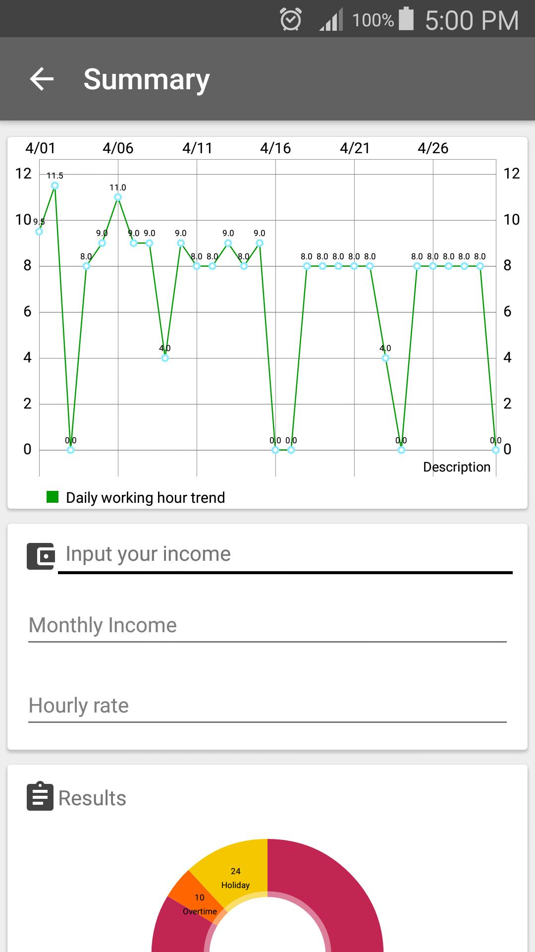☆ Graphical presentation of working hours in selected month.