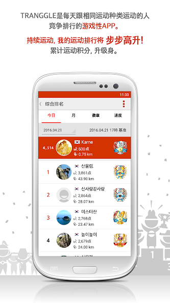 TRANGGLE GPS is a fitness game application that allows users to obtain mileage from activities based on the difference in type of exercise and travel distance.