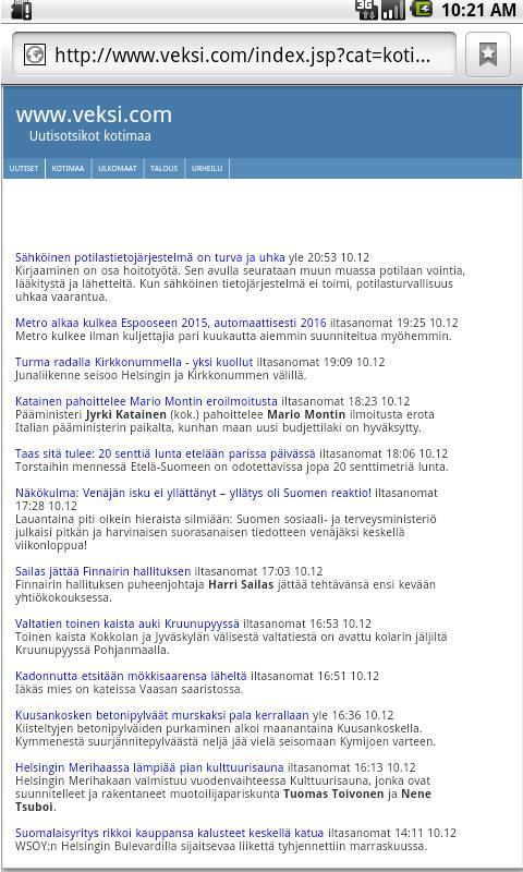News headers compiled on the website of Iltasanomat, Iltalehti, Helsingin Sanomat and Yle. The information is retrieved from the recommended www.veksi.com news site.