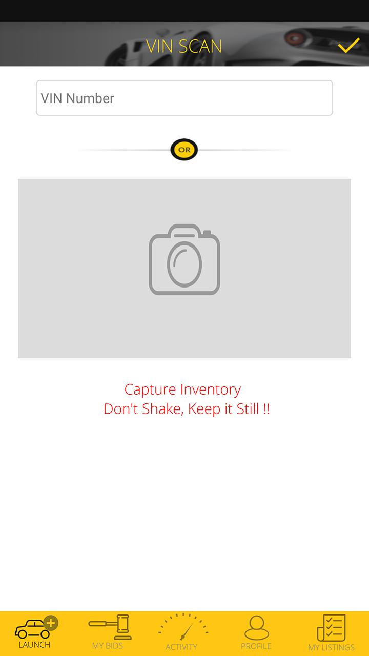 The vehicle may be added to the inventory by using the bar code scanner functionality or by providing the VIN number of the vehicle.