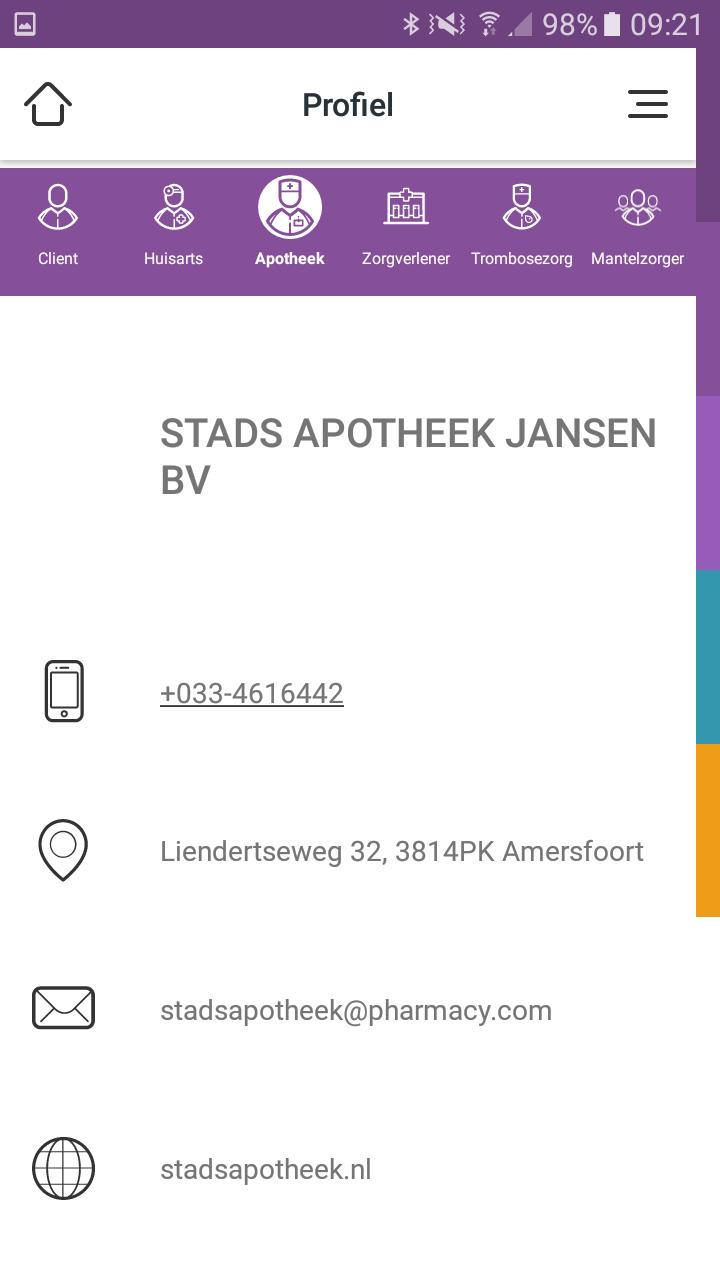 يوفر لك هذا التطبيق نظرة عامة على جميع الأدوية الموصوفة في أي وقت وفي أي مكان. يعطي إمكانية التقاط الاستخدام الفعلي بسهولة عبر قوائم الإدارة الإلكترونية. وبالتالي ، تتم مشاركة جميع المعلومات حول الرعاية الدوائية مع جميع أطراف الرعاية المشاركة حول العميل وهذا يعزز التعاون المتبادل.