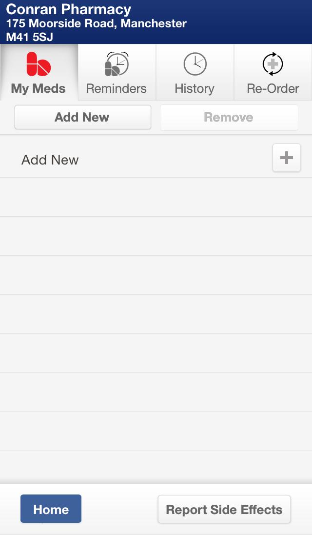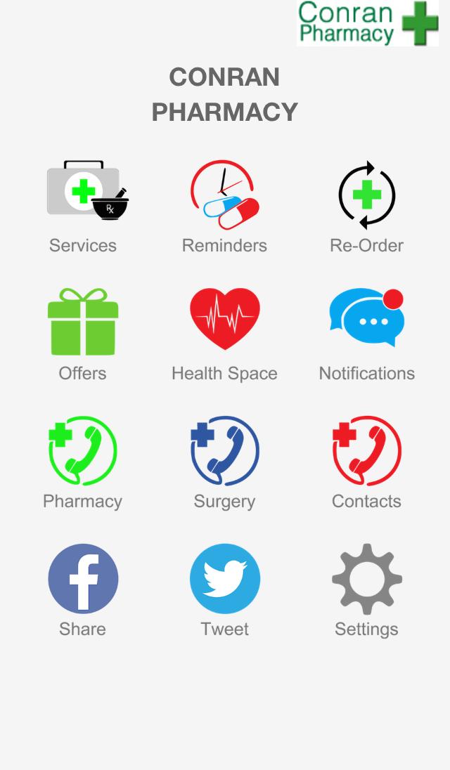 Conran Pharma هو أول تطبيق للسماح للمستخدم ليس فقط بتتبع أدويةه ، ولكن أيضًا إرسال طلبات إعادة ترتيب مباشرة من هاتفه إلى الطبيب أو الصيدلي ، ببساطة بلمسة زر واحدة. يمكن أن تكون طلبات إعادة الترتيب نصية أو صورة ، مع الصور التي يتم التقاطها باستخدام الكاميرا المدمجة للجهاز ، ويتم إرسالها عبر البريد الإلكتروني من داخل واجهة التطبيق.