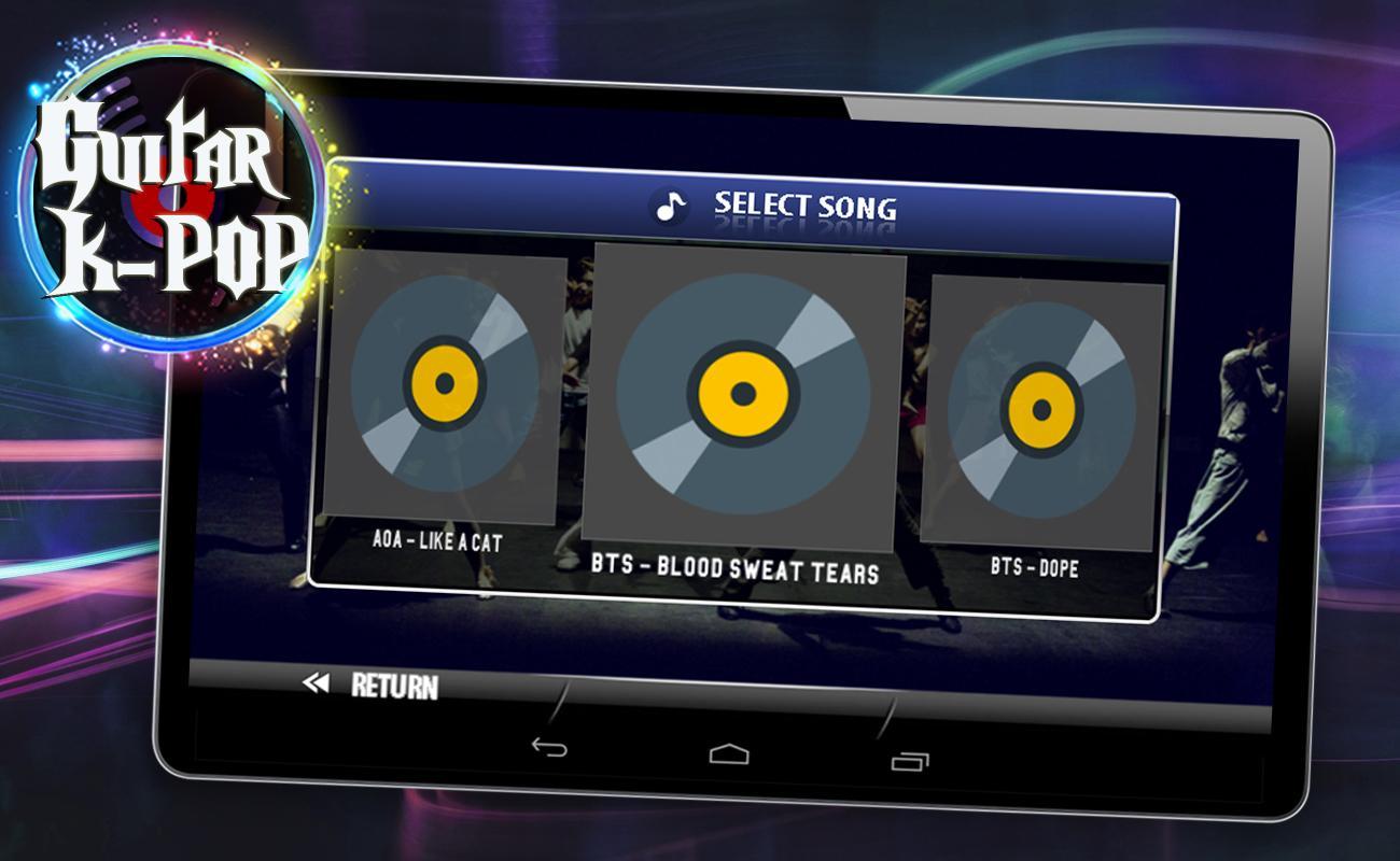 Guitar KPOP Hero هي لعبة النمط النهائي للموسيقى مع موسيقى البوب الكورية (K-POP) وغطاء موسيقى الروك الجيتار الذي سيختبر مهاراتك في العزف على الجيتار ومتابعة إيقاع موسيقى الرقص الإلكترونية ، مثل BTS و Exo و Girls Generation وأكثر من ذلك!. هذه اللعبة بما في ذلك 10 أغاني يمكنك تشغيلها في 3 صعوبات مختلفة ، هناك سهلة ومتوسطة وصعبة. كل الأغاني غير متصلة بالإنترنت ، يمكنك اختيار الأغاني من جهازك المحمول لمزيد من المرح!