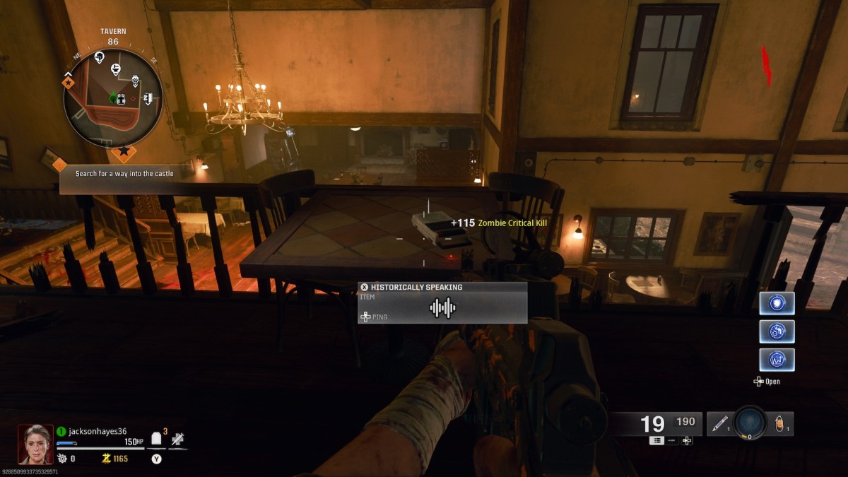 The castle will be full of doors to open, and one of them leads to the Dining Hall, where another Black Ops 6 Citadelle des Morts Audio Log resides. Head to the second floor and look for shelves with a rope at the bottom. The tape will be there, collecting dust.