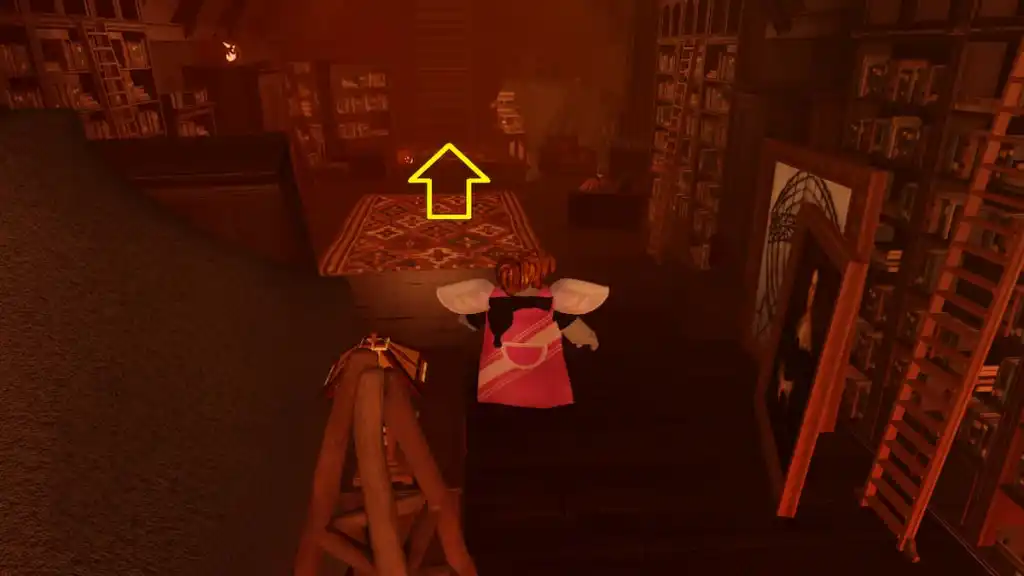 The next Skull Fragment is hidden in the Attic of the Mansion. The Attic is located on the first floor of the building. So, take any staircase that leads to the first floor or use the Golden Key Necklace to teleport to that location. After reaching the Attic, walk straight down the lane and take the first left at the center to find a ladder that takes you further up. Climb these ladders and go left to find a portrait of a medical person. Just next to the portrait, you can find the fifth Skull Fragment on a table.
