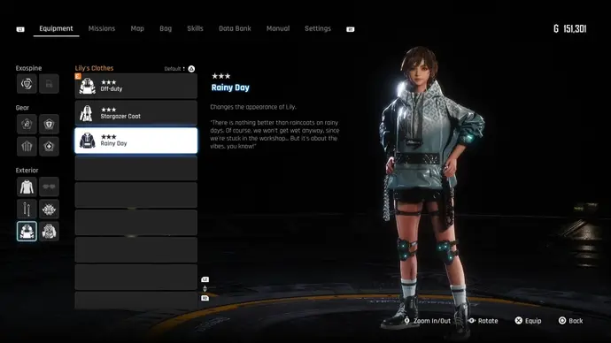 The main methods of getting these outfits in Stellar Blade is by finding small boxes while exploring both optional and story areas, and purchasing cosmetics from vendors with Vitcoins. Once you buy an outfit, or find a pair of earrings and glasses, they will be waiting for you in the equipment screen to style your team's Naytiba-hunting wardrobe.