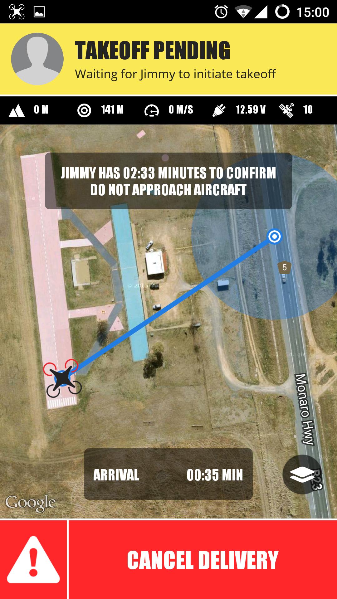Senden und akzeptieren Sie Lieferungen mit der FlyTrex Sky Drone und Flytrex Messenger App.