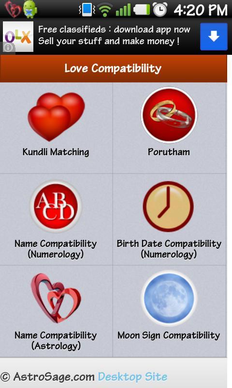 3. Mondzeichenkompatibilität (RASI-Match)- Wenn Sie Ihr Geburtsdatum oder Ihre Geburtszeit nicht haben, können Sie trotzdem auf Ihrem Mondzeichen eine Horoskop-Matching durchführen. Wenn Sie Ihr Mondzeichen nicht kennen, können Sie eingebaute Mondzeichenrechner verwenden.