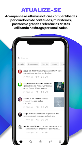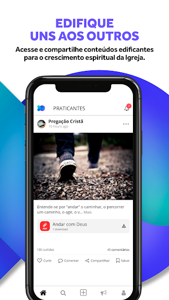 - Teilen und speichern Sie erbauliche christliche Inhalte für die Kirche. Auf diese Weise ermöglicht die App den Benutzern, jede Art von Inhalten zu teilen, von PDF -Dateien über Studien, Andachten, Artikel und usw., um Videos, Lob, Fotos und mehr zu predigen. Die Anwendung wurde so entwickelt, dass das Leben mit Christus in jeder Hinsicht geteilt wird, weshalb Sie diesen Inhalt zusätzlich zu den Medien untertitel und nach Tags segmentieren können. Sie können jederzeit und überall jede Art von erbaulichen Inhalten im Königreich veröffentlichen. Mit dieser Funktion können Sie bei dieser Funktion alles speichern, was Sie später interessiert, ohne nach dem Profil der von Ihnen geteilten Person suchen zu müssen.