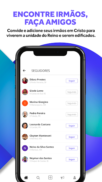 - Brüder finden, Freunde finden. Eines der Ziele der Praktizierenden ist es, Verbindungen zwischen dem Reich Gottes zu schaffen. Mit dieser Anwendung können Sie Geschwister finden, Freunde hinzufügen, Profile einflussreicher Personen, Führungskräfte, Ministerien, Inhaltsersteller befolgen und auch von anderen Benutzern verfolgt werden. Sie können Personen durch das Menü "Explore" suchen und hinzufügen, indem Sie den Namen der Person eingeben, mit der Sie eine Verbindung herstellen möchten, oder indem Sie in Ihrem persönlichen Profil nach Ihren Followern suchen. Sie können das Profil Ihres Freundes anzeigen, bevor Sie ihn hinzufügen.