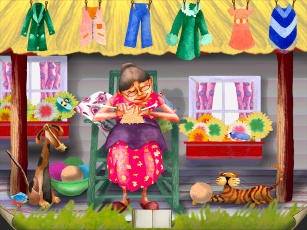 Schafe müssen nie kalt sein, weil ihre Wolle sehr weich und warm ist. Aber es braucht viel Arbeit, um im Winter zwei kleine Kinder genauso warm und gemütlich zu machen. Die Schafe müssen mit frischem Gras und Raaten gefüttert werden, wenn ihre Wolle fertig ist. Die Wolle muss in Garn verwundet werden und dann kann Oma das Garn in schöne warme Kleider stricken. Jetzt können Sie der Geschichte folgen, sich um die Schafe kümmern und die Kinder für den Winter in schönen warmen Kleidern kleiden.