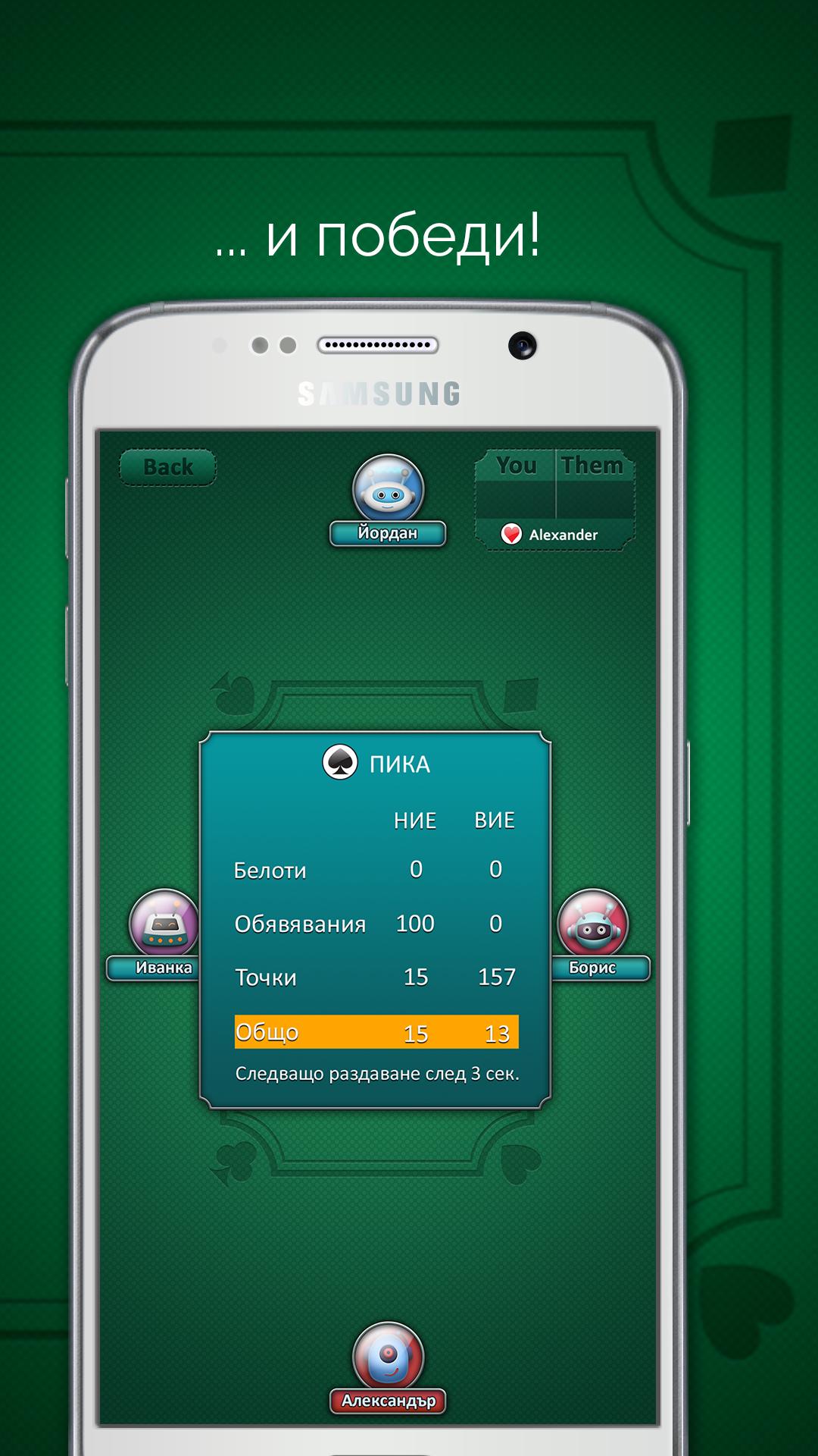 Bot Belote ist Ihr neues Belote -Spiel und fordert Sie auf, mit der künstlichen Intelligenz von Bots zu konkurrieren.