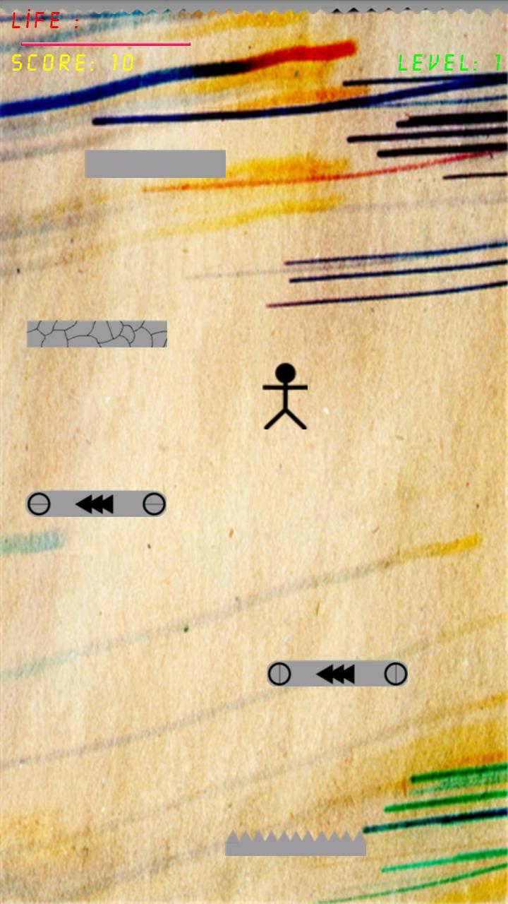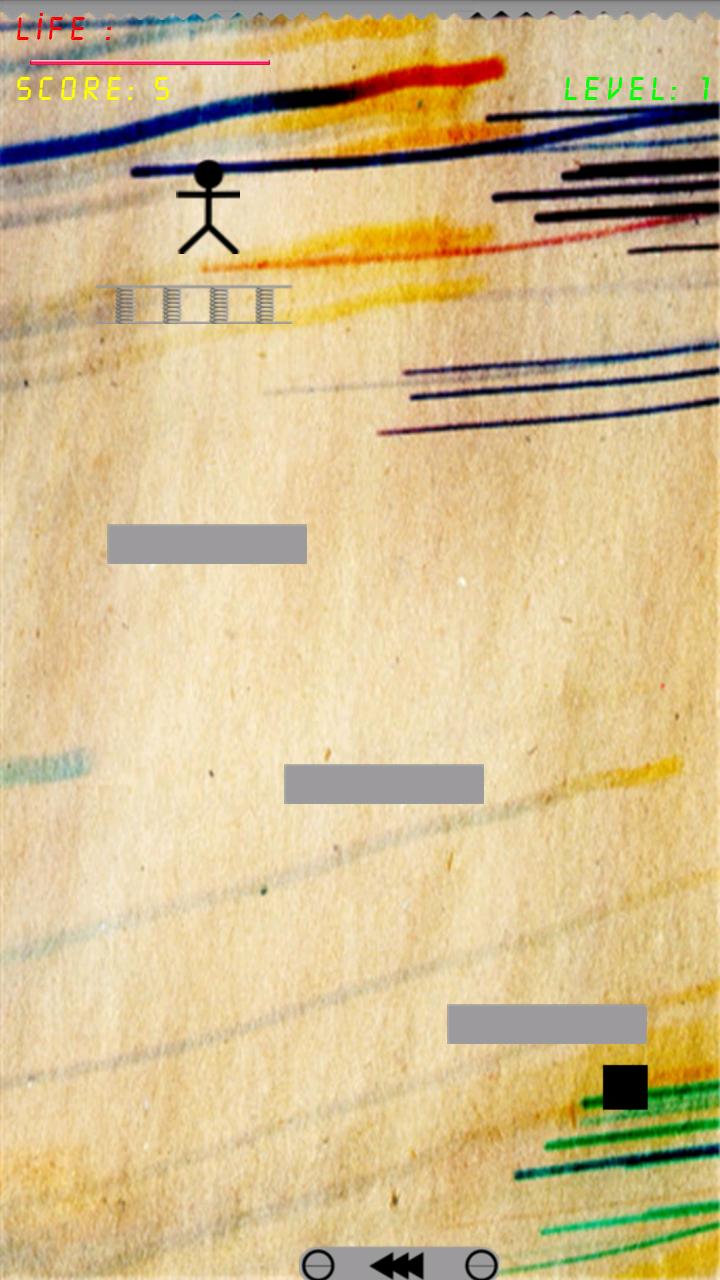 Wenn das Spiel beginnt, können Sie einen kleinen schwarzen Mann kontrollieren, um die Treppe hinunter zu fallen. Seien Sie vorsichtig, treten Sie nicht auf den Nagel und berühren Sie den oberen Nagel nicht.