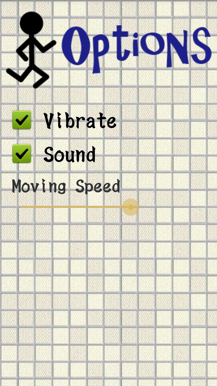 Auf der Seite "Optionen" können Sie steuern, ob das Spiel den Sound spielt und ob das Spiel beim Berühren der Treppe zittert.