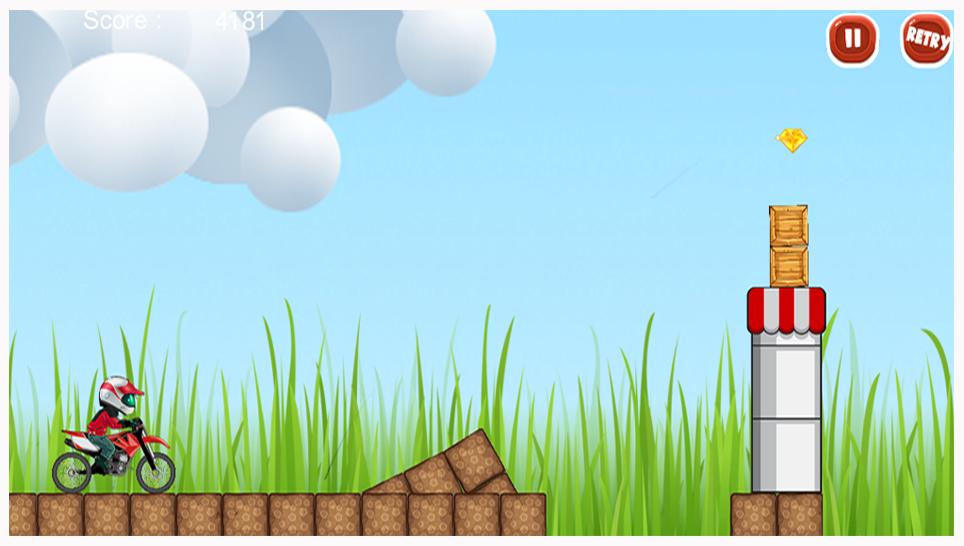 - Sie müssen in diesem Speed -Stunt -Bike -Rennen die verrückten Hindernisse überqueren und so viele Diamanten verdienen, die Sie können.